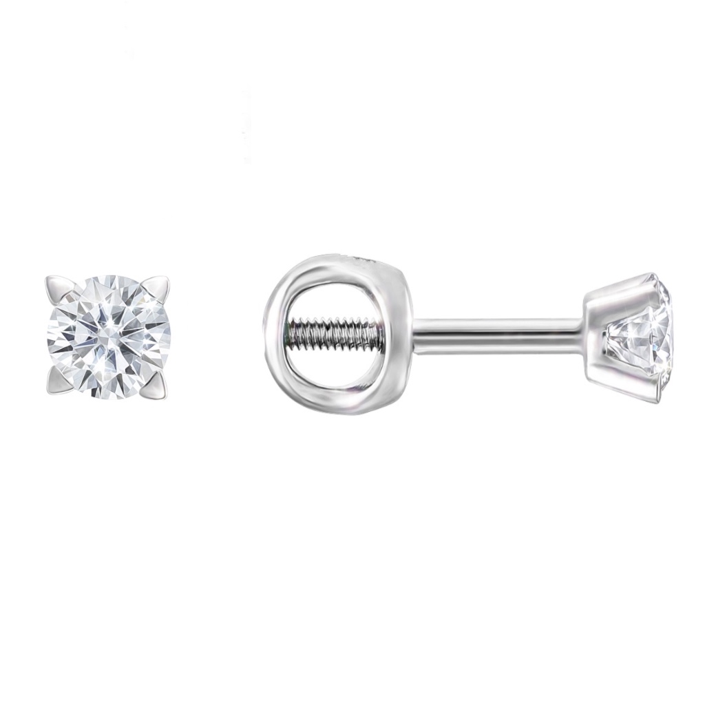 Серьги-пусеты винтовые Mostar Jewellery из белого золота 585 пробы с бриллиантами — воплощение классического стиля и безупречного вкуса. Миниатюрные золотые серьги с натуральными бриллиантами станут универсальным украшением для повседневной носки и особых случаев.