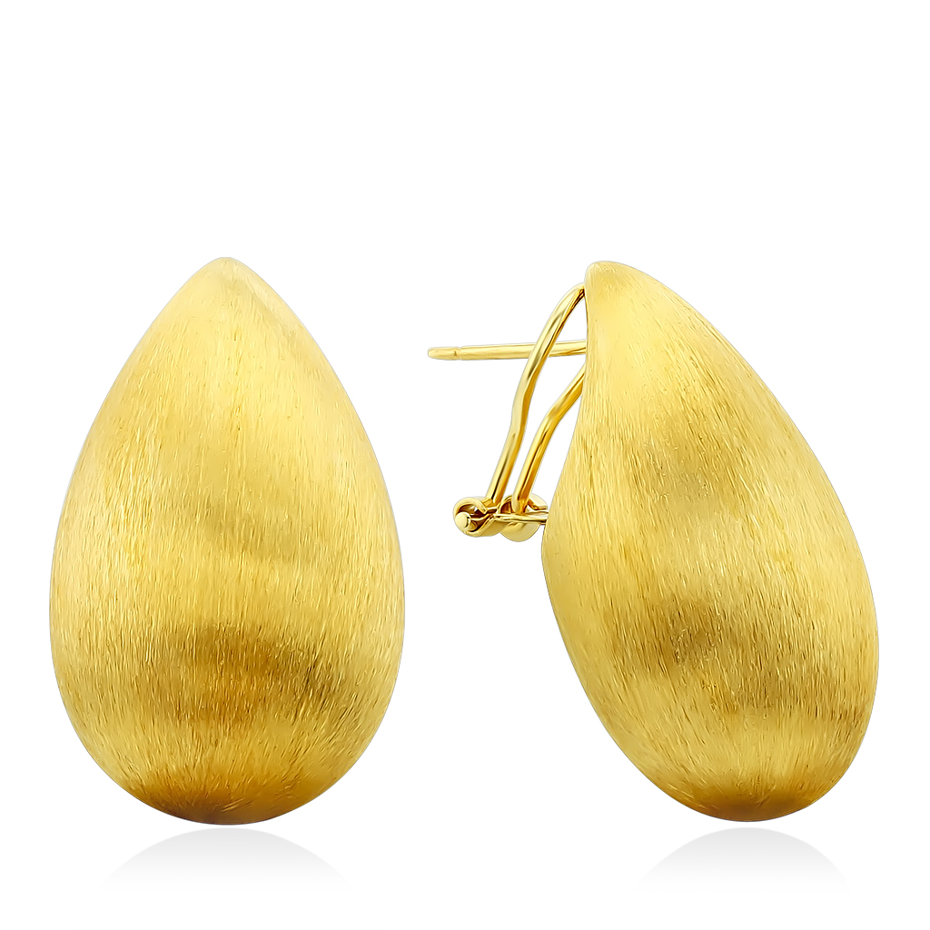 Серьги из золота 585 пробы выполнены в модном стиле в форме крупной объемной капли. В этом сезоне такой стиль не оставил равнодушной ни одну модницу.