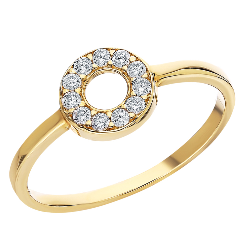 Верхушка выполнена в виде плоского кольца, украшенного фианитами.