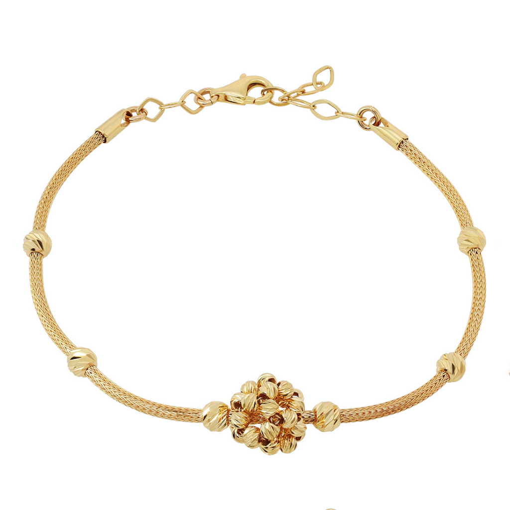 Конструкция оснащена регулируемыми звеньями для точной подгонки размера, обеспечивая идеальную посадку на запястье. Прочность и гипоаллергенные свойства золота 585 пробы гарантируют сохранение безупречного вида при ежедневной носке.