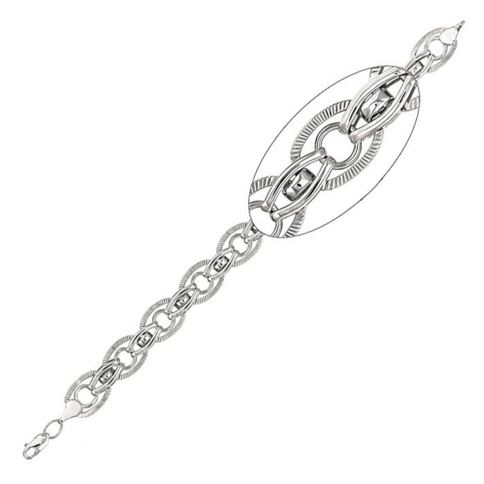 Серебряный браслет , артикул 151463 по цене 8990 руб. в наличии в салонах Город Золотой. Изделие имеет внешний вид "Фантазия", белый цвет, весом 8,94 грамм.