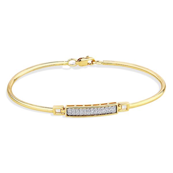 Браслет из желтого золота с фианитом, артикул 153691 по цене 28347 руб. в наличии в салонах Город Золотой. Изделие имеет внешний вид "Жесткие", желтый цвет, весом 4,11 грамм.