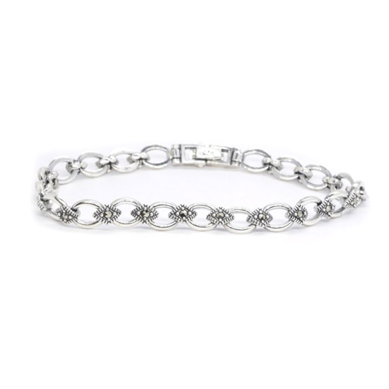 Серебряный браслет с марказитом, артикул 137620 по цене 8490 руб. в наличии в салонах Город Золотой. Изделие имеет внешний вид "Фантазия", белый цвет, весом 11,54 грамм.
