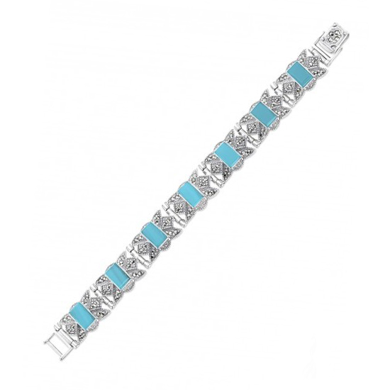 Серебряный браслет с бирюзой, артикул 155108 по цене 19190 руб. в наличии в салонах Город Золотой. Изделие имеет внешний вид "Фантазия", белый цвет, весом 27,02 грамм.