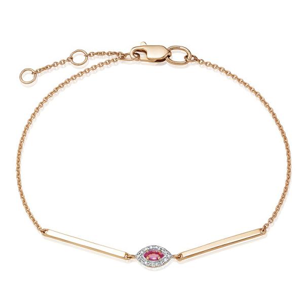 Золотой браслет с рубином, артикул 160408 по цене 23447 руб. в наличии в салонах Город Золотой. Изделие имеет внешний вид "Фантазия", красный цвет, весом 1,8 грамм.