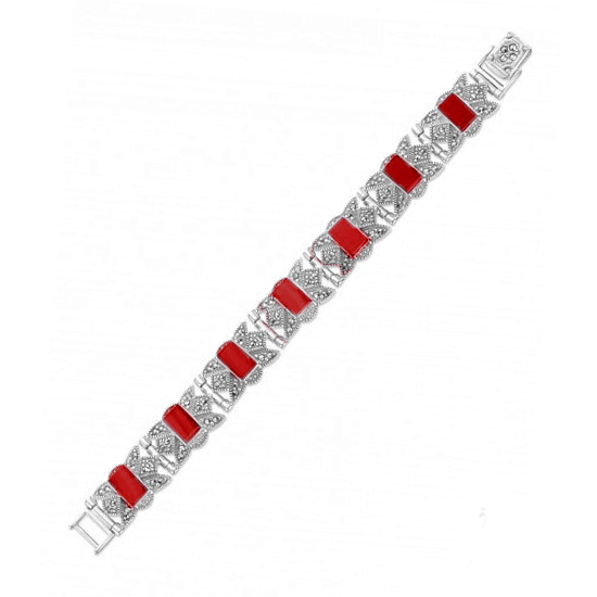 Серебряный браслет с кораллом, артикул 170641 по цене 16490 руб. в наличии в салонах Город Золотой. Изделие имеет внешний вид "Фантазия", белый цвет, весом 23,09 грамм.