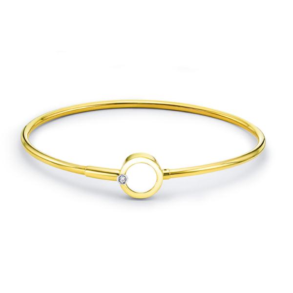 Браслет из желтого золота с фианитом, артикул 171369 по цене 44097 руб. в наличии в салонах Город Золотой. Изделие имеет внешний вид "Жесткие", желтый цвет, весом 4,205 грамм.