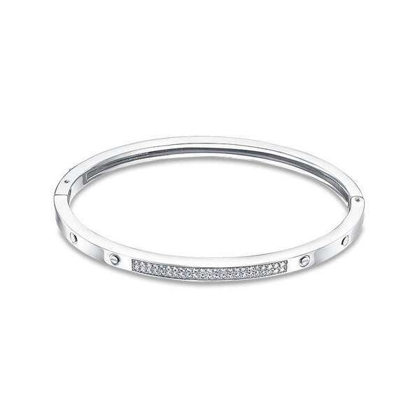 Браслет из белого золота с фианитом, артикул 178896 по цене 117443 руб. в наличии в салонах Город Золотой. Изделие имеет внешний вид "Жесткие", белый цвет, весом 6,94 грамм.