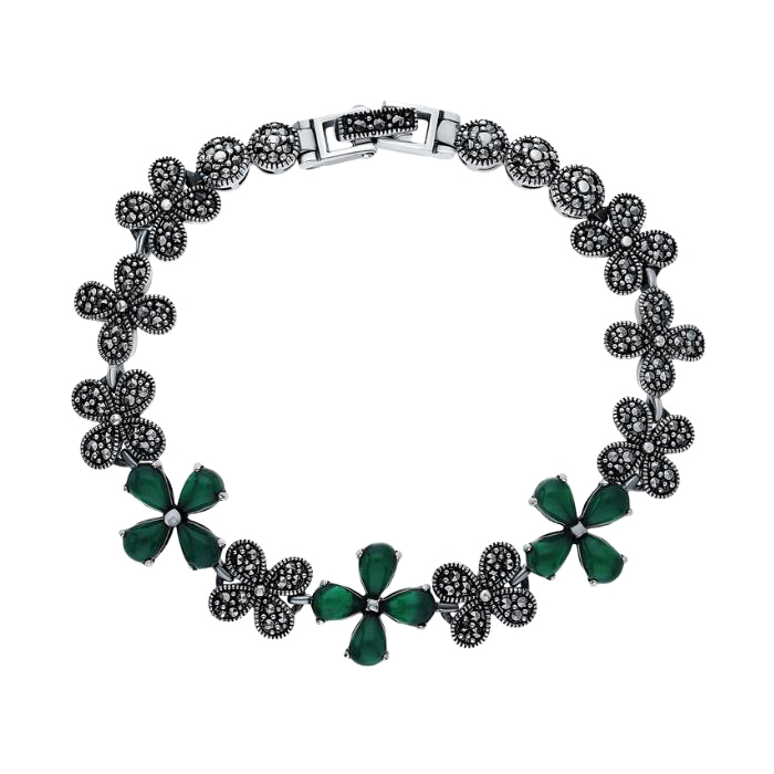 Серебряный браслет с агатом зеленым, артикул 183294 по цене 27190 руб. в наличии в салонах Город Золотой. Изделие имеет внешний вид "Фантазия", белый цвет, весом 16,66 грамм.