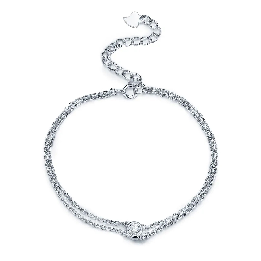 Серебряный браслет с фианитом, артикул 184262 по цене 4260 руб. в наличии в салонах Город Золотой. Изделие имеет внешний вид "Фантазия", белый цвет, весом 2,38 грамм.