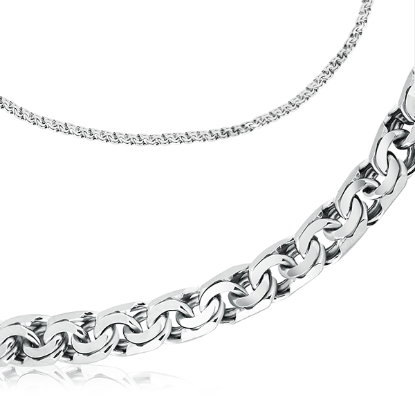 Серебряная цепь , артикул 32967 по цене 13944 руб. в наличии в салонах Город Золотой. Изделие имеет внешний вид "Бисмарк", белый цвет, весом 16,6 грамм.