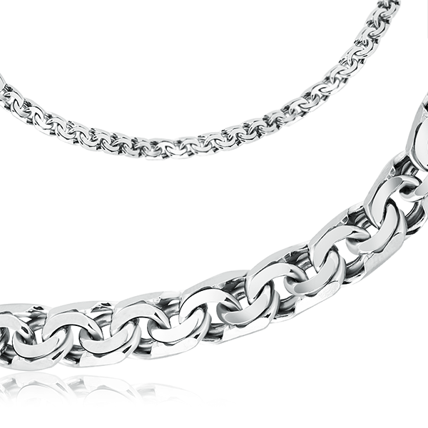 Серебряная цепь , артикул 32971 по цене 59539 руб. в наличии в салонах Город Золотой. Изделие имеет внешний вид "Бисмарк", белый цвет, весом 70,88 грамм.