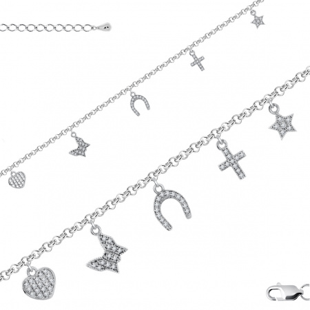 Серебряный браслет с фианитом, артикул 141125 по цене 3790 руб. в наличии в салонах Город Золотой. Изделие имеет внешний вид "Фантазия", белый цвет, весом 3,53 грамм.