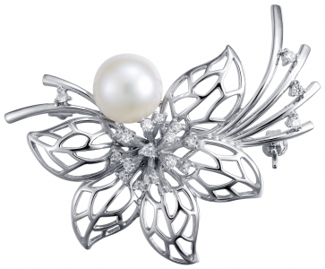 Брошь из серебра с жемчугом, артикул 129745 по цене 12390 руб. в наличии в салонах Город Золотой. Изделие имеет внешний вид "Классика/узор", белый цвет, весом 10,71 грамм.