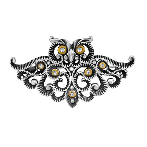 Брошь из серебра с чернением, артикул 141028 по цене 2990 руб. в наличии в салонах Город Золотой. Изделие имеет внешний вид "Классика/узор", белый цвет, весом 3,58 грамм.