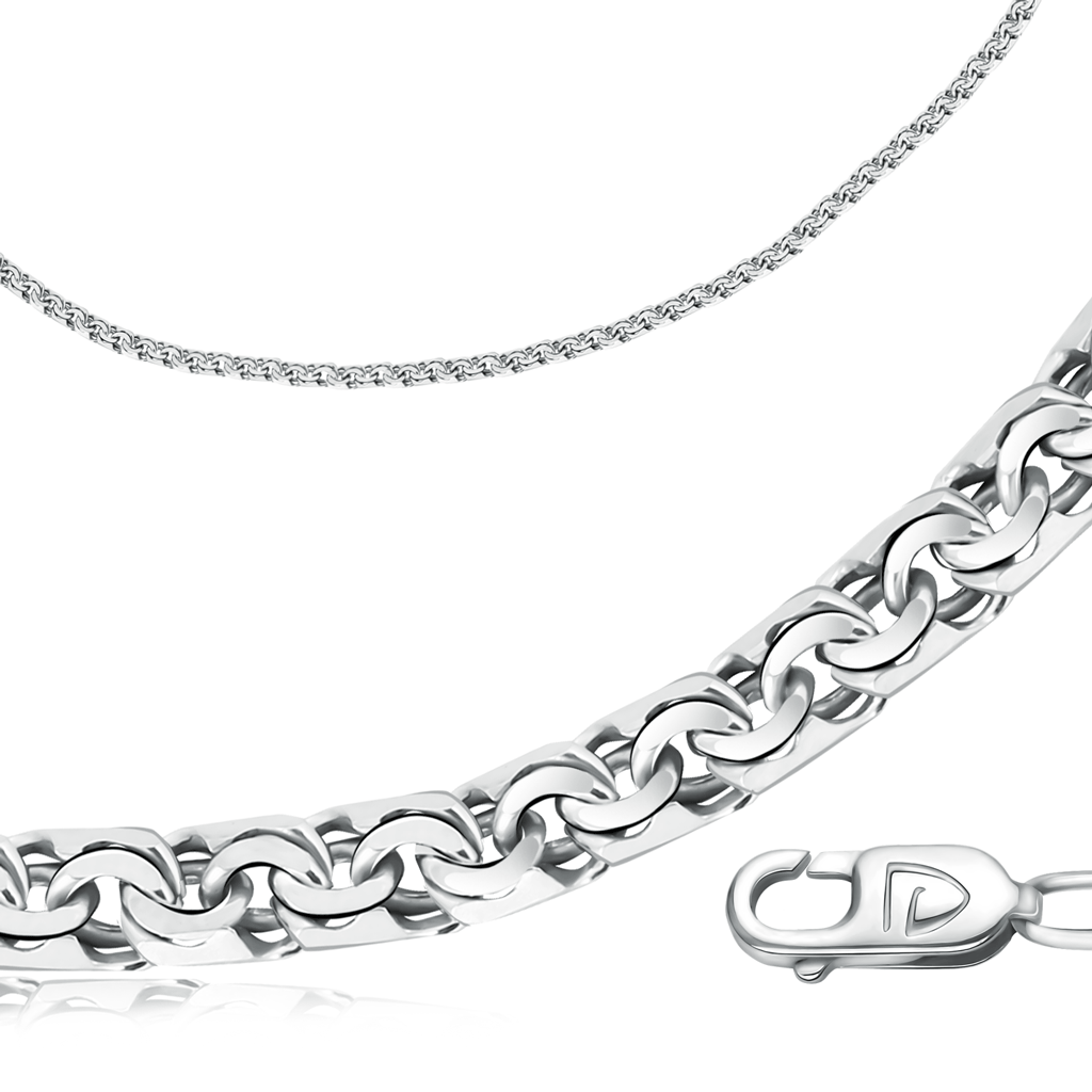 Серебряная цепь , артикул 58699 по цене 7509 руб. в наличии в салонах Город Золотой. Изделие имеет внешний вид "Бисмарк", белый цвет, весом 8,94 грамм.