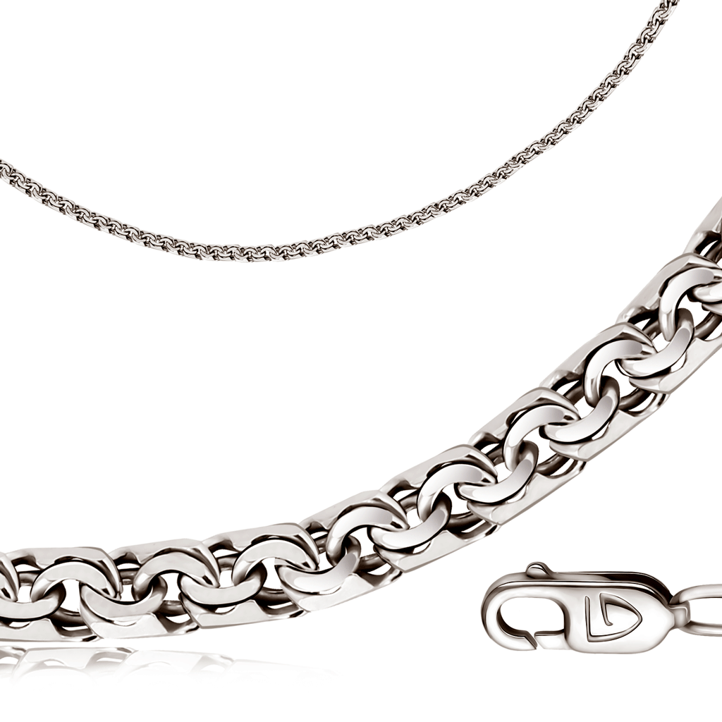 Серебряная цепь , артикул 50782 по цене 9040 руб. в наличии в салонах Город Золотой. Изделие имеет внешний вид "Бисмарк", белый цвет, весом 10,76 грамм.