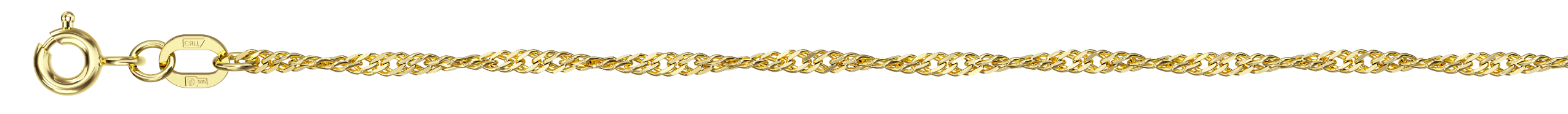 Цепь из желтого золота , артикул 187190 по цене 43659 руб. в наличии в салонах Город Золотой. Изделие имеет внешний вид "Сингапур", желтый цвет, весом 2,58 грамм.