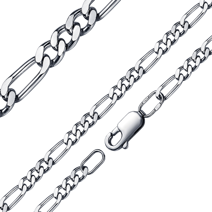 Серебряная цепь , артикул 128755 по цене 4590 руб. в наличии в салонах Город Золотой. Изделие имеет внешний вид "Фигаро", белый цвет, весом 12,49 грамм.