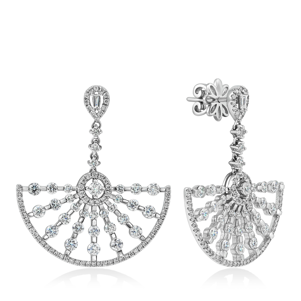 Серьги выглядят нарядно и дорого, подойдут для торжественных событий, для свадьбы и для выступлений на сцене, ярко сверкая при свете софитов.