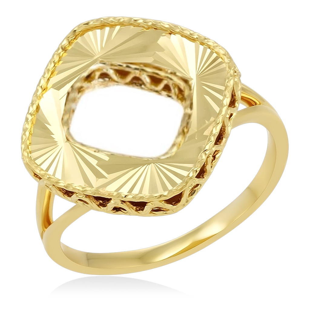 Декоративная часть кольца квадратной формы с яркой лучевой алмазной огранкой.