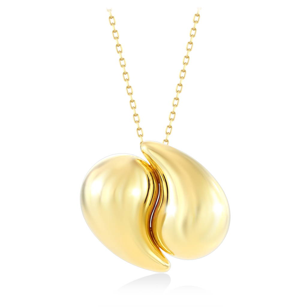 Колье из желтого золота 585 пробы с размером подвесной части:20*18,6 мм. Ширина каждой капли по лицевой стороне– 10 мм.