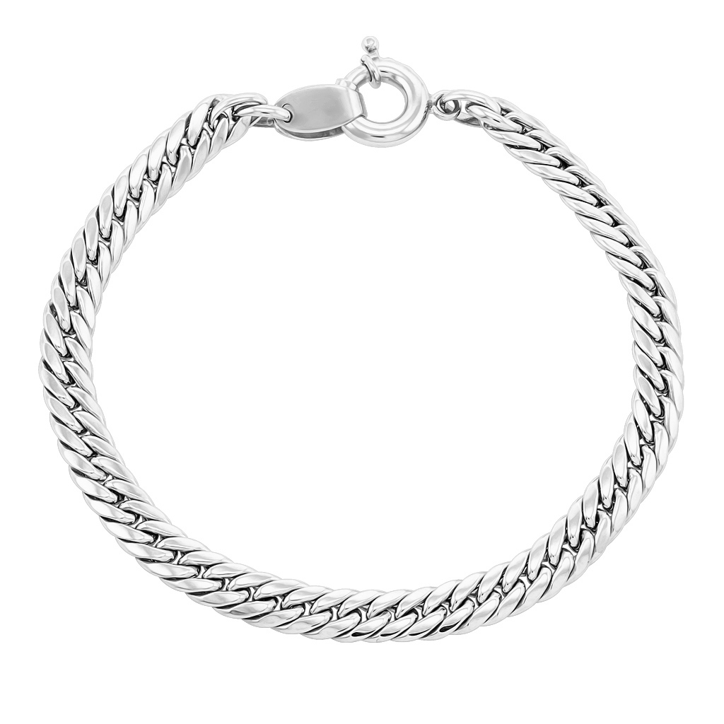 Элегантный золотой браслет станет стильным акцентом в Вашем образе. Панцирное плетение снова в моде и смотрится особенно эффектно благодаря покрытию белым родием, которое придаёт украшению яркий блеск. Пустотелые звенья делают браслет лёгким и удобным в носке, а крупный замок обеспечивает надёжную фиксацию.