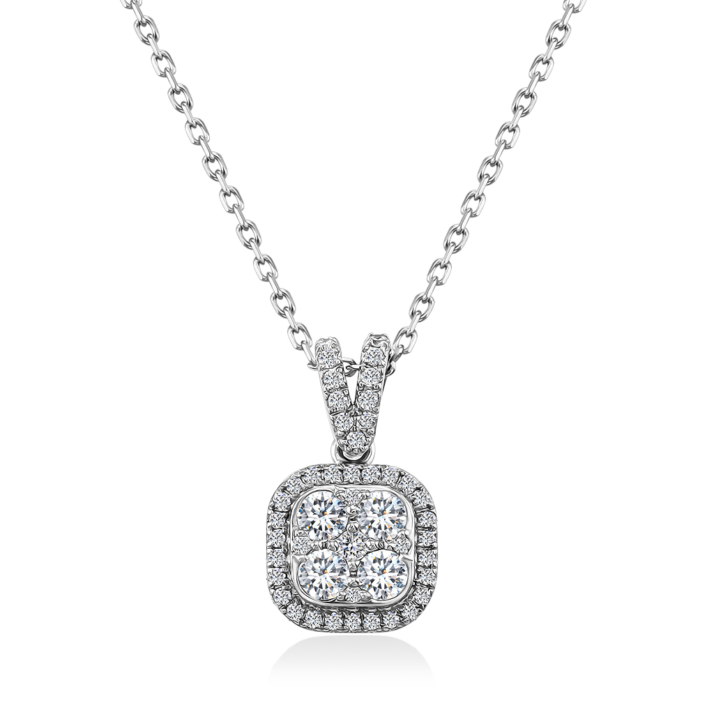 Золотое колье с бриллиантами всегда в тренде. Колье состоит из якорной цепочки и миниатюрной подвески квадратной формы с закругленными углами, центральная площадка приподнята и украшена круглыми бриллиантами разного размера, по периметру их дополняют более мелкие бриллианты круглой огранки. Ушко тоже украшено бриллиантами. Размер подвески 7х7 мм, толщина площадки 4 мм, ушко подойдет для цепи толщиной 2 мм.