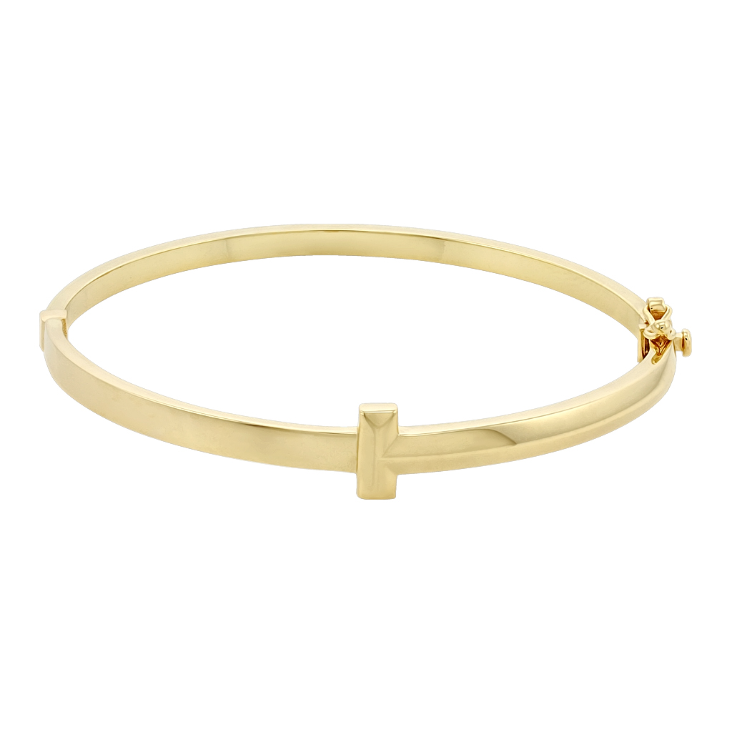 Браслет из золота 585 пробы - отличное украшение для себя и в подарок. Жесткий браслет в виде обруча никогда не выходит из моды и подходит для любого мероприятия, сочетается с разными образами. Эта модель похожа на известный мировой бренд Тиффани, поэтому всегда будет пользоваться популярностью. Замок усилен дополнительной фиксирующей петлей.