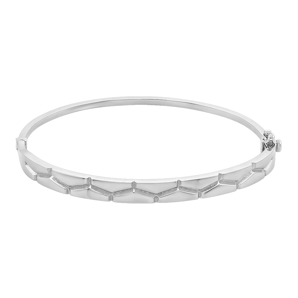 Браслет из золота 585 пробы - отличное украшение для себя и в подарок. Жесткий браслет в виде обруча никогда не выходит из моды и подходит для любого мероприятия, сочетается с разными образами. По лицевой части он имеет утолщение и декоративную обработку геометрической формы, что добавляет украшению нестандартный вид.