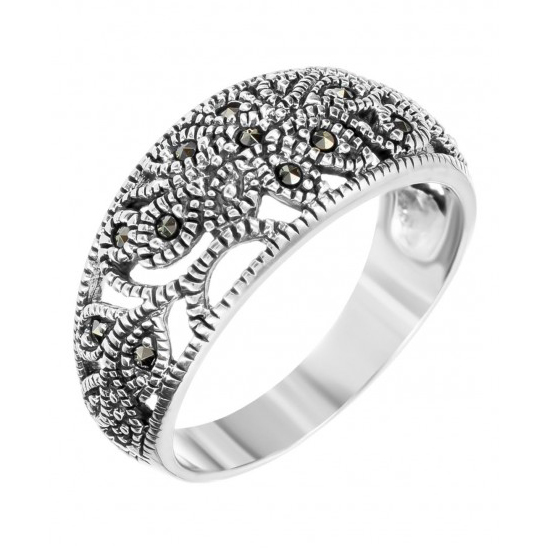 Серебряное кольцо с марказитом, артикул 137635 по цене 3690 руб. в наличии в салонах Город Золотой. Изделие имеет внешний вид "Классика/узор", белый цвет, весом 3,29 грамм.