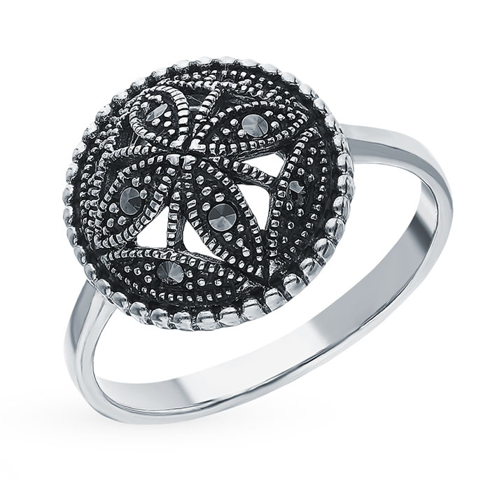 Серебряное кольцо с марказитом, артикул 144331 по цене 3440 руб. в наличии в салонах Город Золотой. Изделие имеет внешний вид "Классика/узор", белый цвет, весом 2,37 грамм.