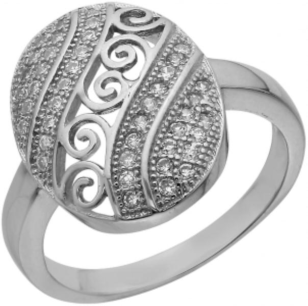 Серебряное кольцо с фианитом, артикул 68949 по цене 1590 руб. в наличии в салонах Город Золотой. Изделие имеет внешний вид "Классика/узор", белый цвет, весом 3,6 грамм.