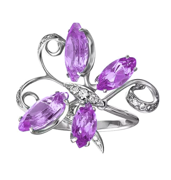 Кольцо из белого золота с аметистом, артикул 133516 по цене 130990 руб. в наличии в салонах Город Золотой. Изделие имеет внешний вид "Классика/узор", белый цвет, весом 5,56 грамм.