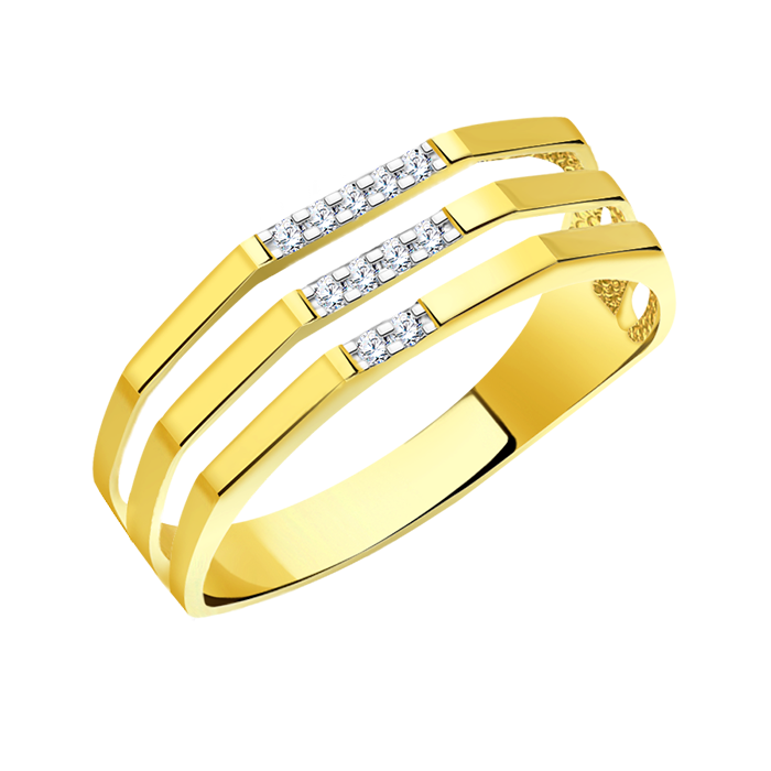 Кольцо из желтого золота с фианитом, артикул 153938 по цене 35539 руб. в наличии в салонах Город Золотой. Изделие имеет внешний вид "Классика/узор", желтый цвет, весом 2,1 грамм.