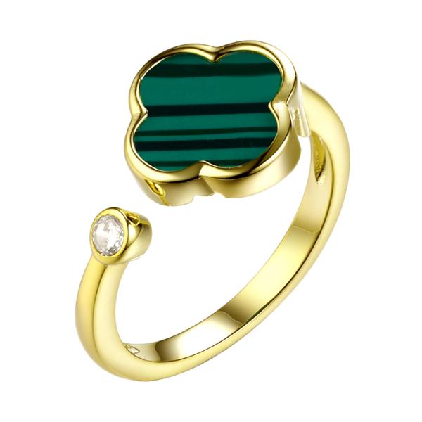 Серебряное кольцо с позолотой с малахитом, артикул 154286 по цене 2990 руб. в наличии в салонах Город Золотой. Изделие имеет внешний вид "Классика/узор", белый цвет, весом 2,2 грамм.