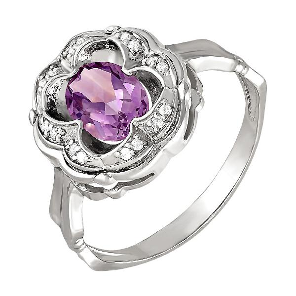 Серебряное кольцо с аметистом, артикул 158876 по цене 2390 руб. в наличии в салонах Город Золотой. Изделие имеет внешний вид "Классика/узор", белый цвет, весом 2,92 грамм.