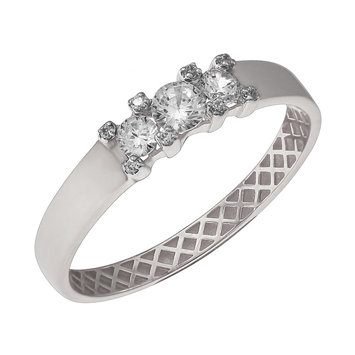 Кольцо из белого золота с фианитом, артикул 165881 по цене 26061 руб. в наличии в салонах Город Золотой. Изделие имеет внешний вид "Дорожка", белый цвет, весом 1,54 грамм.