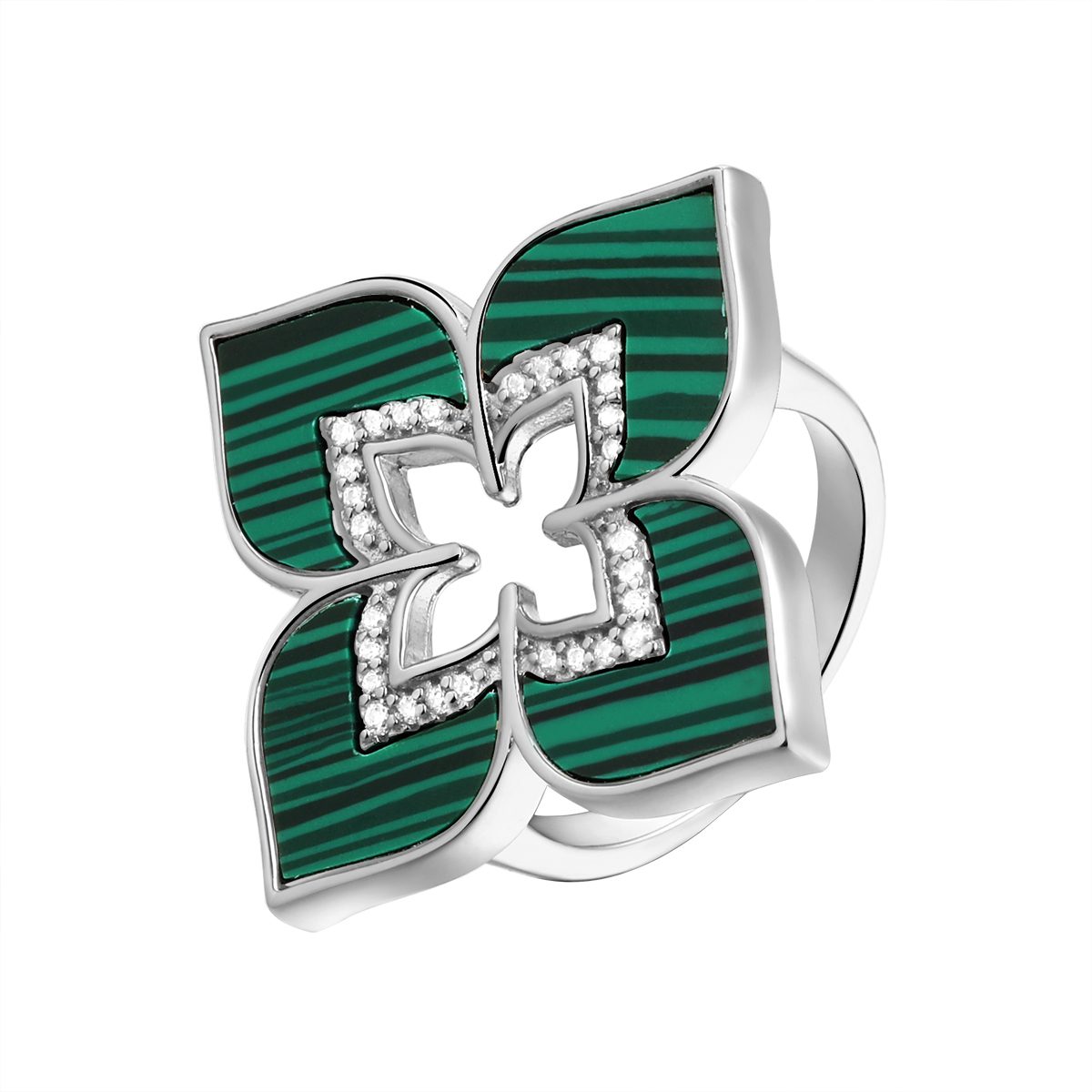 Серебряное кольцо с малахитом, артикул 169072 по цене 7990 руб. в наличии в салонах Город Золотой. Изделие имеет внешний вид "Классика/узор", белый цвет, весом 7,42 грамм.