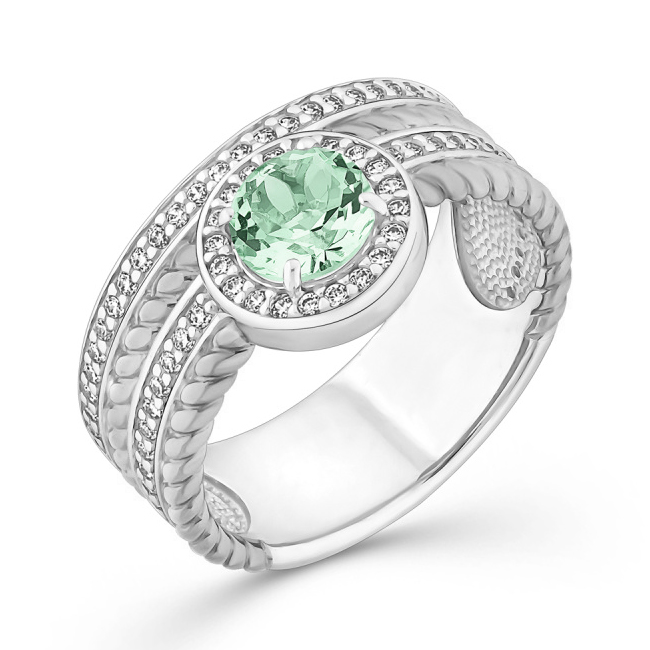 Серебряное кольцо с празиолитом, артикул 171665 по цене 8790 руб. в наличии в салонах Город Золотой. Изделие имеет внешний вид "Классика/узор", белый цвет, весом 5,3 грамм.