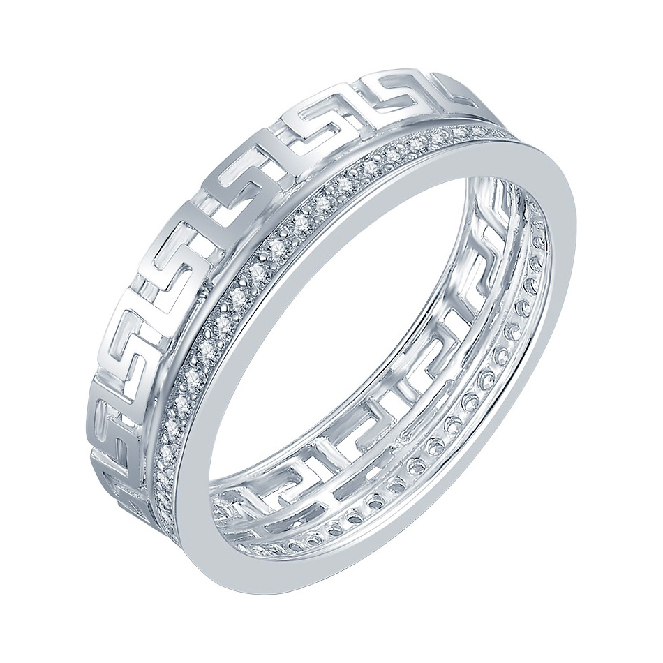 Серебряное кольцо с фианитом, артикул 174445 по цене 3530 руб. в наличии в салонах Город Золотой. Изделие имеет внешний вид "Классика/узор", белый цвет, весом 2,07 грамм.