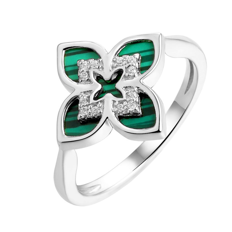 Серебряное кольцо с малахитом, артикул 175401 по цене 3590 руб. в наличии в салонах Город Золотой. Изделие имеет внешний вид "Классика/узор", белый цвет, весом 2,32 грамм.
