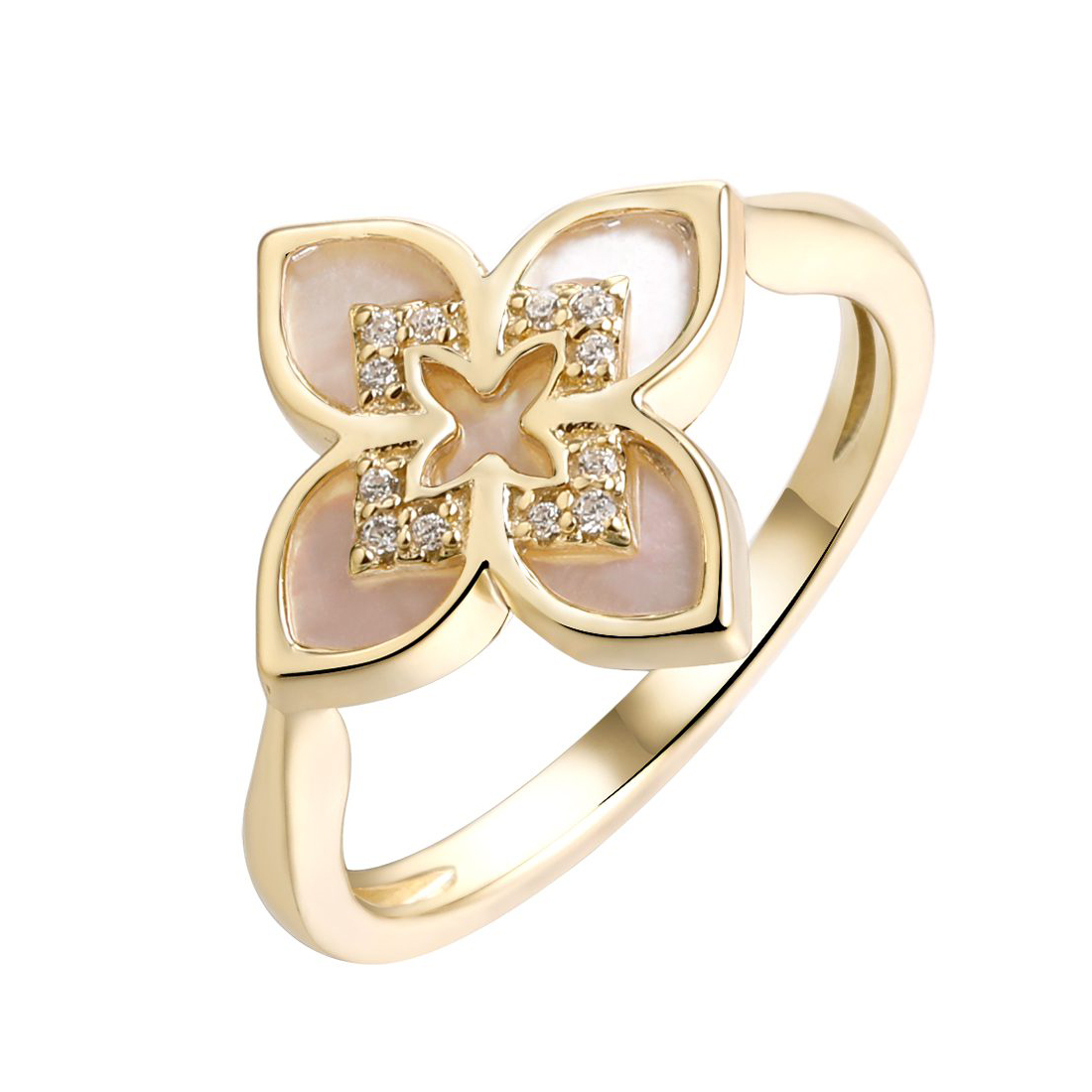 Серебряное кольцо с позолотой с перламутром, артикул 181488 по цене 3790 руб. в наличии в салонах Город Золотой. Изделие имеет внешний вид "Классика/узор", белый цвет, весом 2,62 грамм.