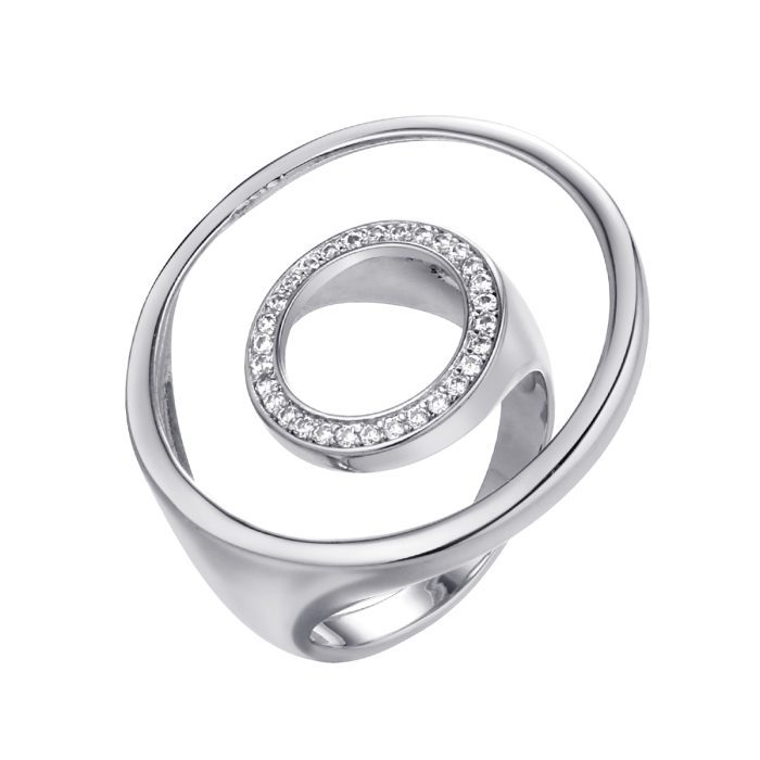 Серебряное кольцо с фианитом, артикул 175370 по цене 6190 руб. в наличии в салонах Город Золотой. Изделие имеет внешний вид "Классика/узор", белый цвет, весом 6,75 грамм.