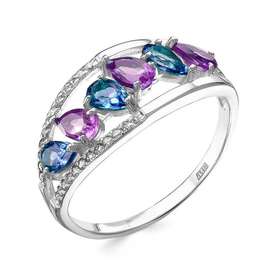 Серебряное кольцо с полудрагоценными камнями, артикул 182316 по цене 3744 руб. в наличии в салонах Город Золотой. Изделие имеет внешний вид "Классика/узор", белый цвет, весом 1,91 грамм.