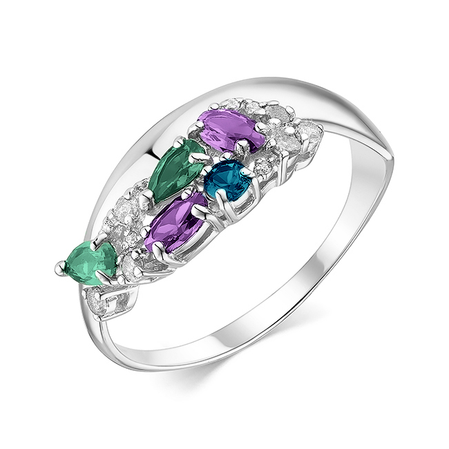 Серебряное кольцо с полудрагоценными камнями, артикул 181636 по цене 5080 руб. в наличии в салонах Город Золотой. Изделие имеет внешний вид "Классика/узор", белый цвет, весом 2,59 грамм.