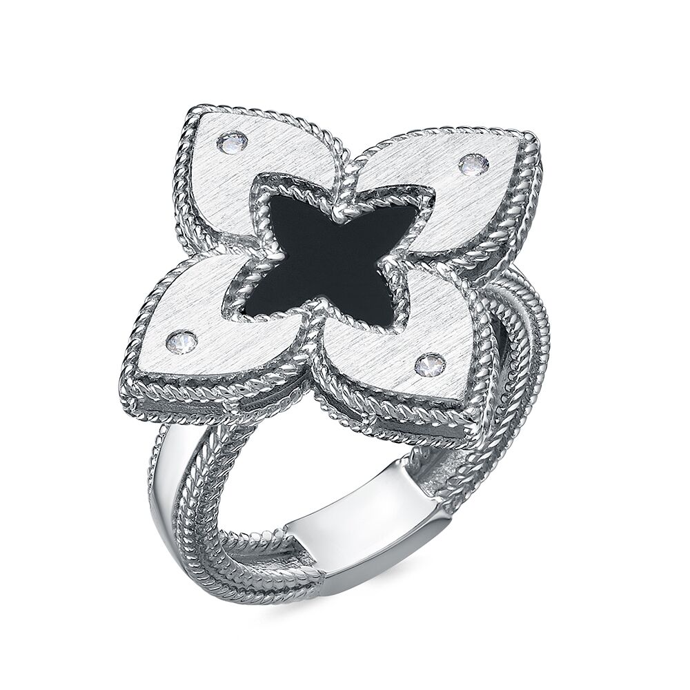 Серебряное кольцо с ониксом, артикул 177497 по цене 12490 руб. в наличии в салонах Город Золотой. Изделие имеет внешний вид "Классика/узор", белый цвет, весом 7,43 грамм.