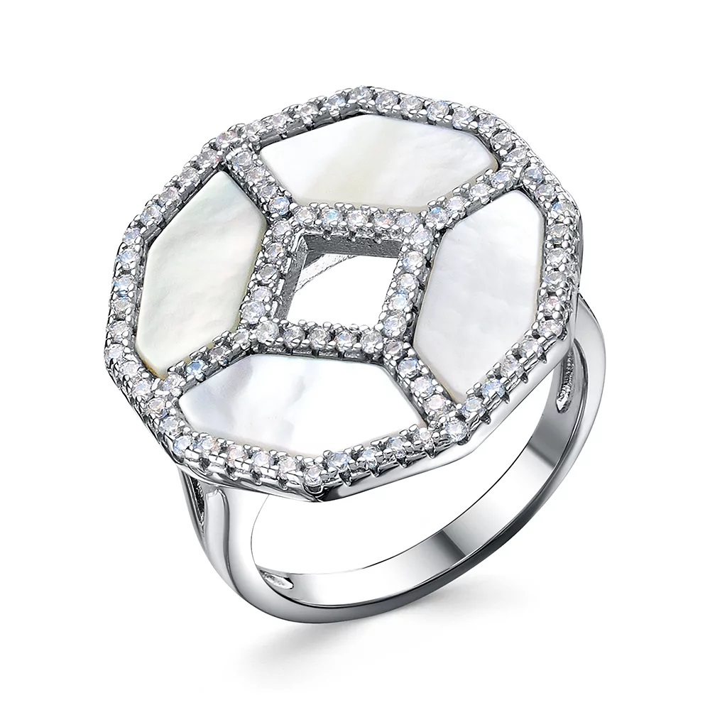 Серебряное кольцо с перламутром, артикул 177439 по цене 10190 руб. в наличии в салонах Город Золотой. Изделие имеет внешний вид "Классика/узор", белый цвет, весом 5,66 грамм.