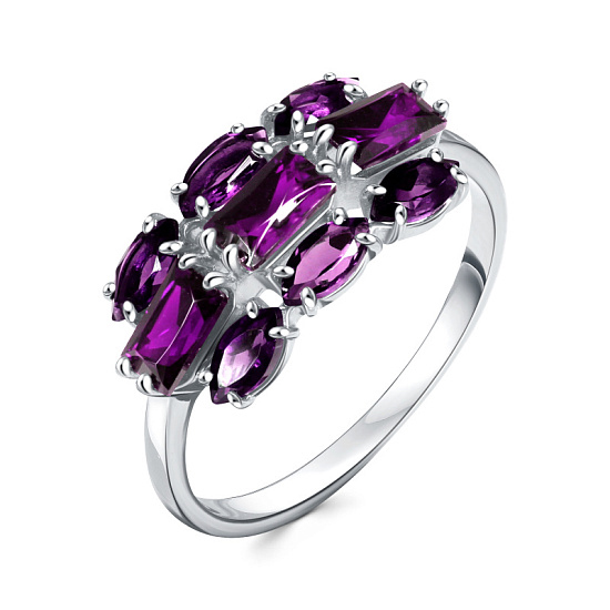 Серебряное кольцо с аметистом, артикул 176953 по цене 3790 руб. в наличии в салонах Город Золотой. Изделие имеет внешний вид "Дорожка", белый цвет, весом 2,04 грамм.