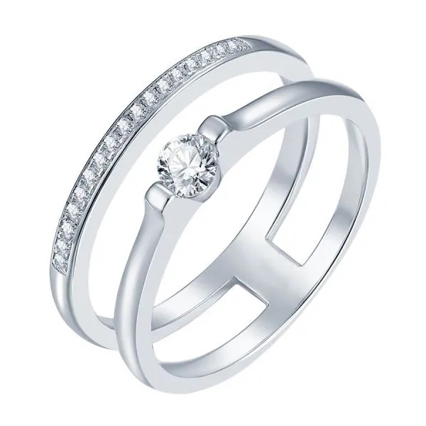 Серебряное кольцо с фианитом, артикул 184292 по цене 5430 руб. в наличии в салонах Город Золотой. Изделие имеет внешний вид "Классика/узор", белый цвет, весом 3,71 грамм.